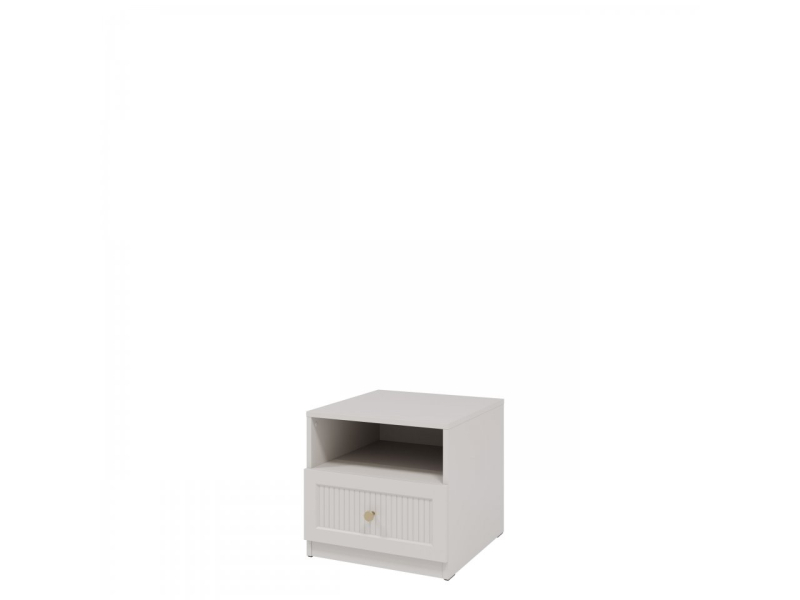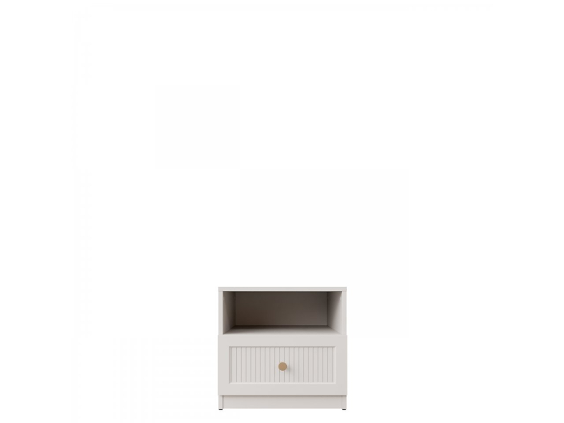 Tento model je dostupný ve velmi oblíbeném kašmírovém odstínu. Dokonale doplní decentní design ložnice a stane se jeho nedílnou součástí. Dekorativní přední část nočního stolku se zásuvkou a decentní zlatá úchytka se dokonale doplňují.