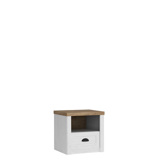 Patty je noční stolek, který určitě vyniká svým zajímavým vzhledem. Barva nábytku Jansa byla doplněna tmavším odstínem pracovní desky a kontrastním úchytem. Styl nočního stolku dokonale ladí s interiérem moderní ložnice, jakož i s provensálským stylem.