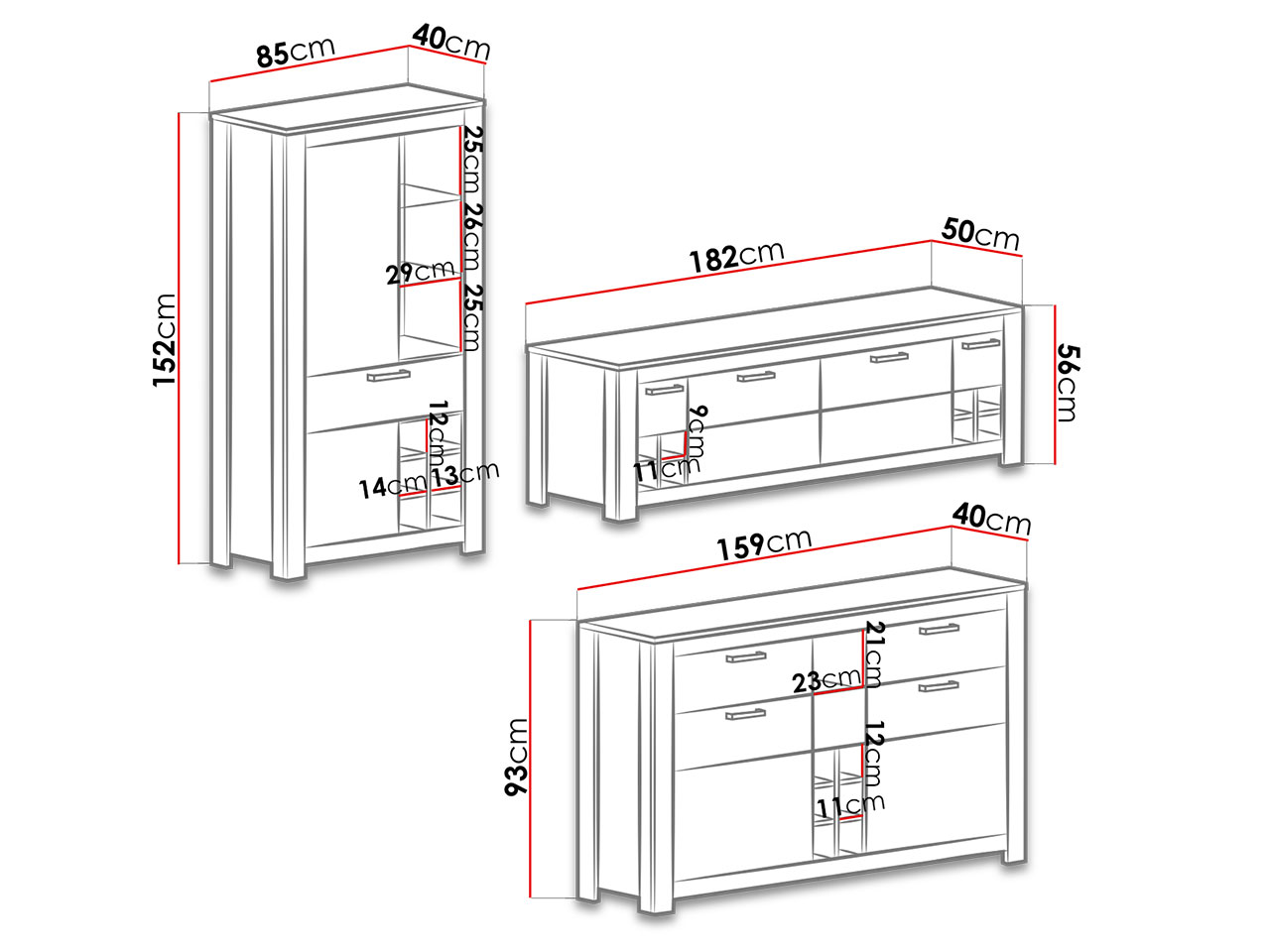 šířka: 182 cm, výška: 56 cm, hloubka: 50 cm,