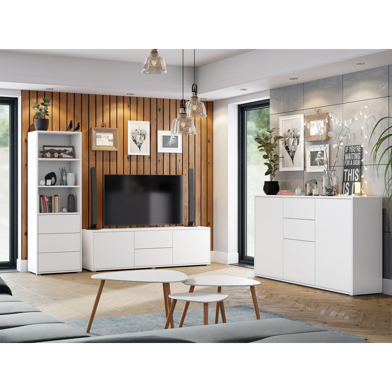Módní sestava nábytku Alekto III je vhodná do malých i velkých obývacích pokojů. Kombinace nejfunkčnějších a nejpotřebnějších prvků v obytném prostoru činí místnost přívětivou pro každou osobu, která ji využívá.