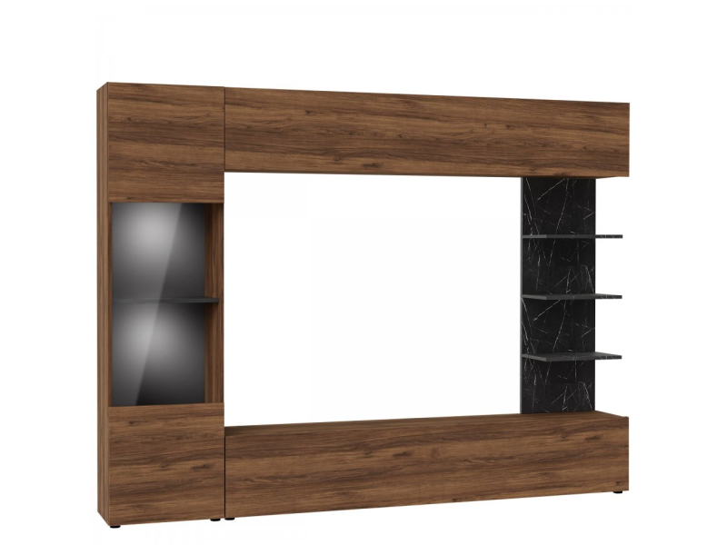 Základním prvkem každé obývací stěny je TV skříňka, která perfektně vystaví váš televizor. Dodatečný úložný prostor poskytuje nástěnná skříňka, kterou můžete umístit nad multimediální zařízení. Další výhodou obývací stěny je vitrína se skleněnými vložkami. Je ideální pro vystavení dekorací.