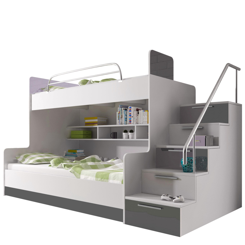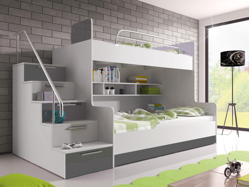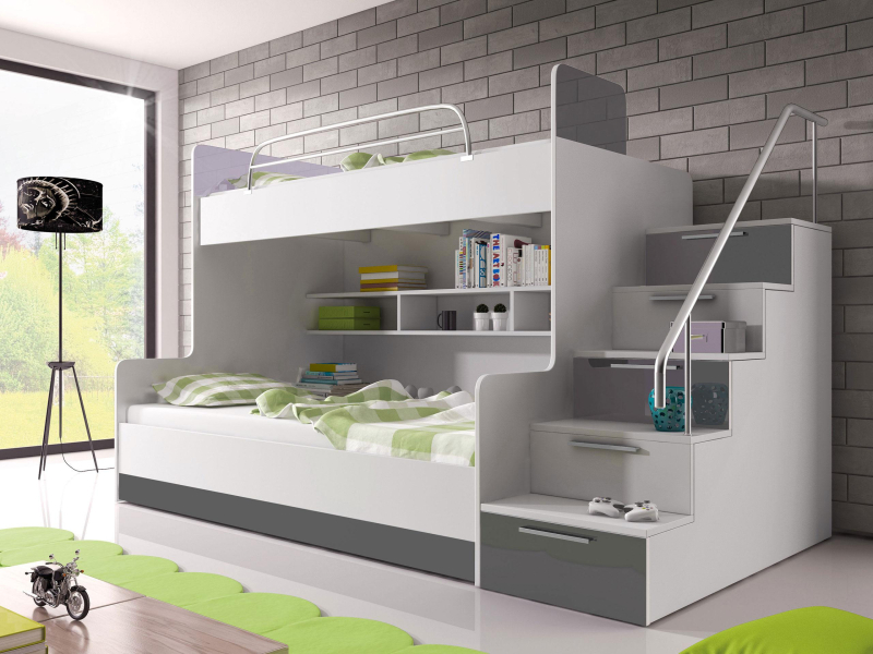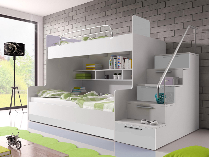 Postel Paradise II poskytuje nejlepší podmínky pro každodenní relaxaci pro dvě děti. Kromě standardní funkce na spaní poskytuje tento moderní a multifunkční nábytek také dobře organizovaný prostor pro ukládání předmětů.