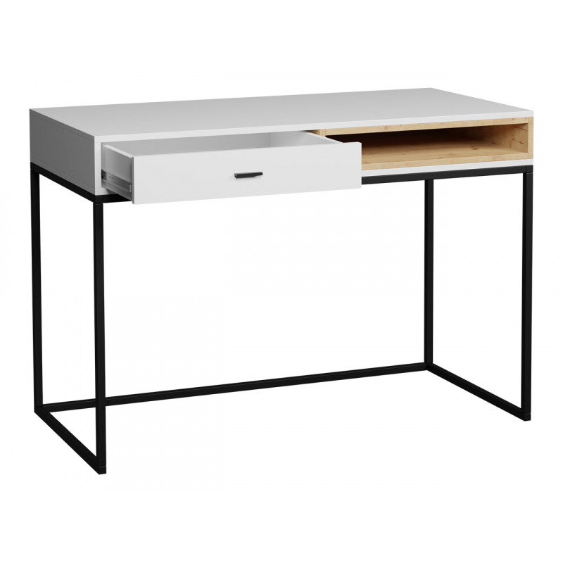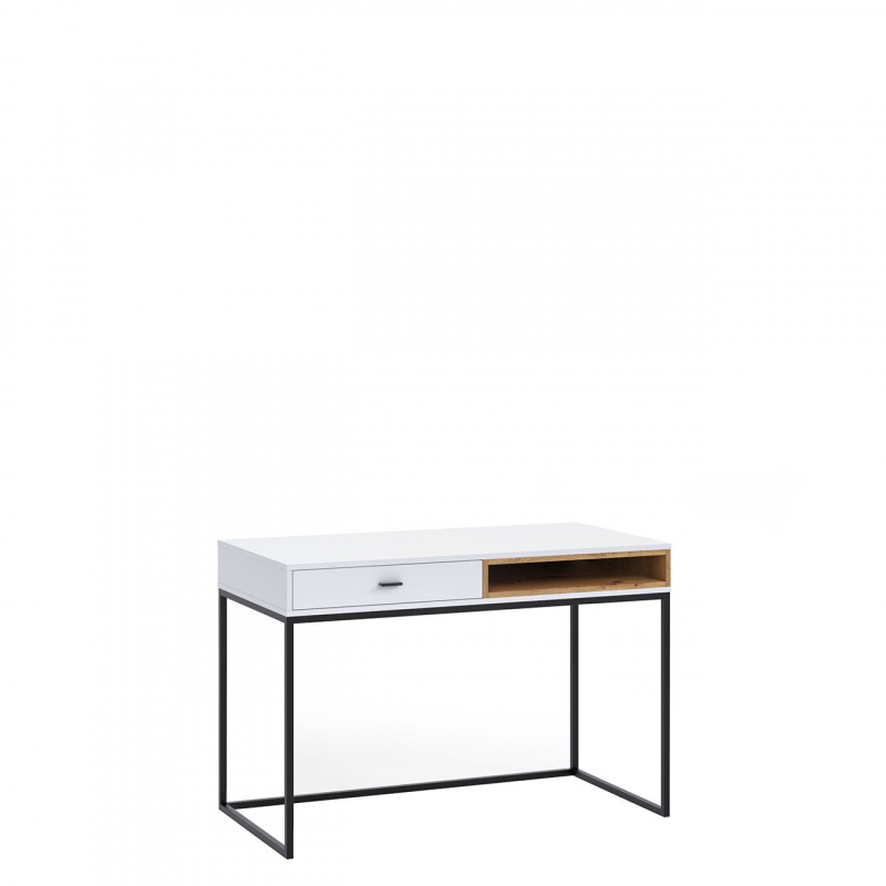 Psací stůl Olier OL01 dokonale harmonizuje s aktuálními trendy v oblasti interiérového designu. Má lehkou strukturu, která spočívá na stabilních a kovových nohách. Korpus psacího stolu je vyroben z dřevotřísky pokryté ABS hranou, což zvyšuje pevnost a odolnost nábytku. Perfektní do každé kanceláře, obývacího pokoje nebo studentského pokoje.