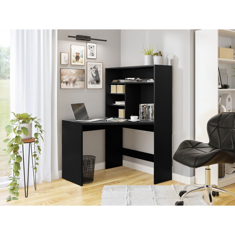 Hloubka stolu je až 100 cm, což poskytuje mnoho pracovní desky, která usnadní každodenní práci. Díky knihovně navíc budete mít po ruce nejnutnější dokumenty, knihy nebo jiné kancelářské doplňky. Rohový stůl Hatteras s knihovnou je vyroben z kvalitní laminované desky.