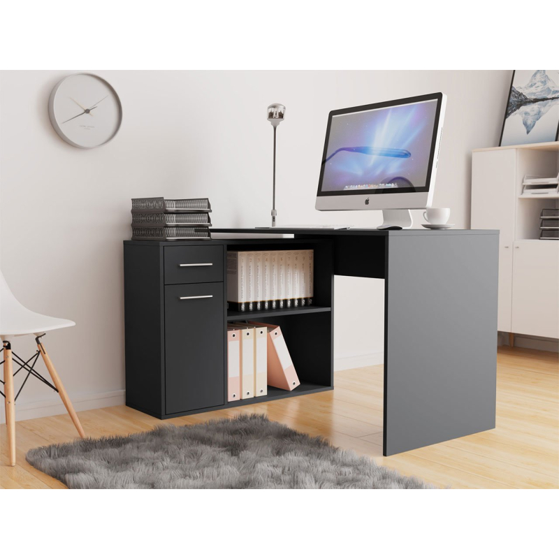 Stůl nemá otočný mechanismus. Existují dva různé způsoby montáže horní části ke skříňce. Díky možnostem stolu můžete snadno vytvořit rohový stůl nebo stůl s klasickou konstrukcí, tzv. rovný stůl. Při montáži stačí zvolit jednu z možností nastavení, kterou však můžete kdykoli změnit přišroubováním horní části zpět na skříňku ve vhodném nastavení. Díky této konstrukci je deska stabilní a během používání nemění svou polohu, např. když židli příliš zatlačíte, opřete se o desku nebo do stolu strčíte nohou.