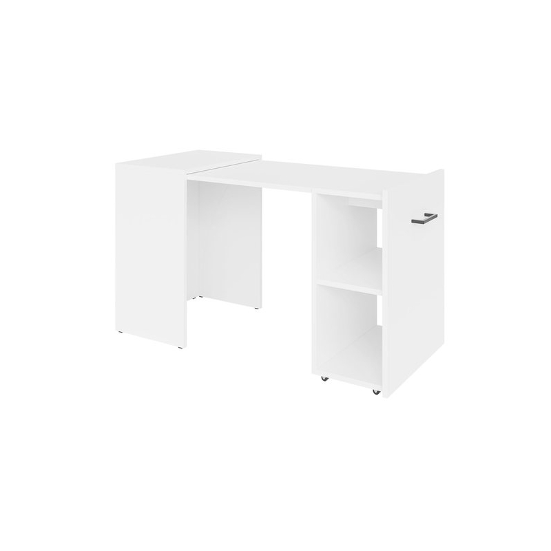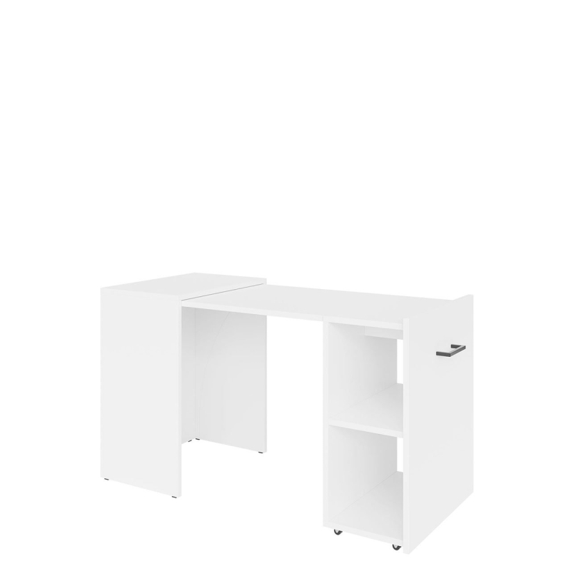 - ve složeném stavu vypadá stolek jako malá komoda, po rozložení se z něj stane plnohodnotný stůl s policemi.