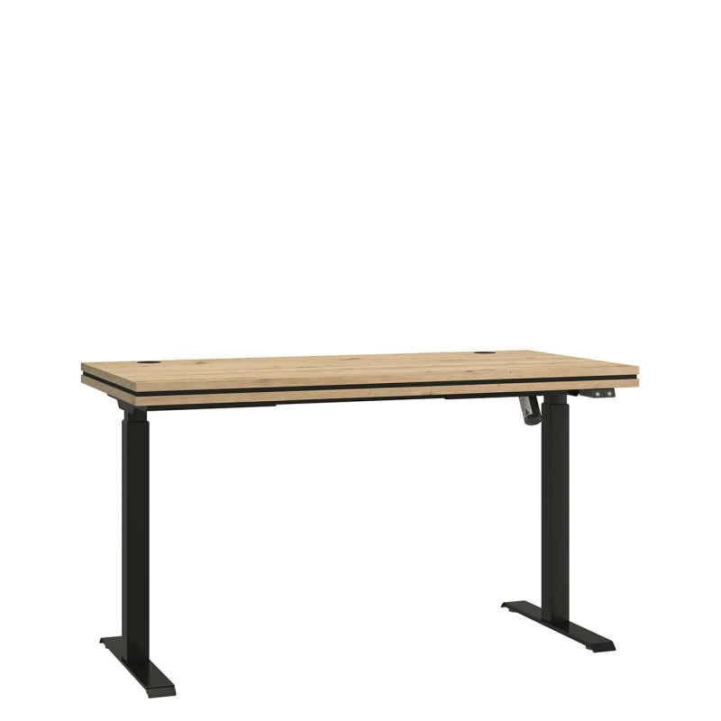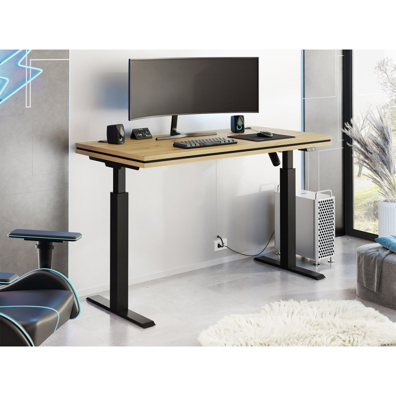 Moderní psací stůl s výškově nastavitelnou deskou Nandu I je kus nábytku pro speciální úkoly. Skvěle se hodí do domácí kanceláře, ale také do pokoje studenta nebo náruživého hráče. Schopnost ovládat výšku stolu poskytuje pohodlné podmínky pro studium a práci. Snižte ho, když si chcete sednout za stůl na židli. Pokud při používání nábytku raději stojíte, jednoduše zvedněte stolovou desku pomocí speciálního ovladače.