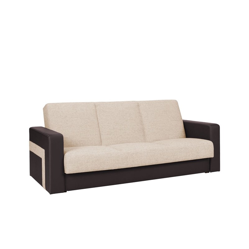 Třímístná pohovka Alaska je model klasického tvaru, který má pevné opěradlo a pohodlné područky. Dekorativním detailem čalouněného nábytku je prošívání na sedáku a opěradle a také kombinace dvou kontrastních barev. Navíc je pohovka vybavena funkcí spaní pro dvě osoby a úložným prostorem na ložní prádlo.