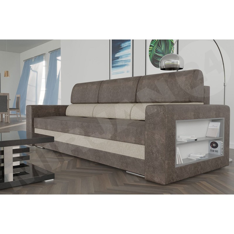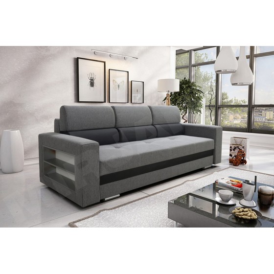 Carina je moderní pokojová pohovka. Skvěle se hodí do obývacího prostoru, pokoje pro mládež i reprezentativního obývacího pokoje. Funkce spaní, kterou je nábytek vybaven, je ideální jak pro každodenní použití, tak jako další místo pro přespání hostů. Pohovka se snadno rozkládá a uvnitř má nádobu na lůžkoviny. Za zmínku stojí zejména boční strany pohovky - na jedné z nich jsou umístěny poličky na praktické doplňky, které podporují pohodlí při odpočinku.