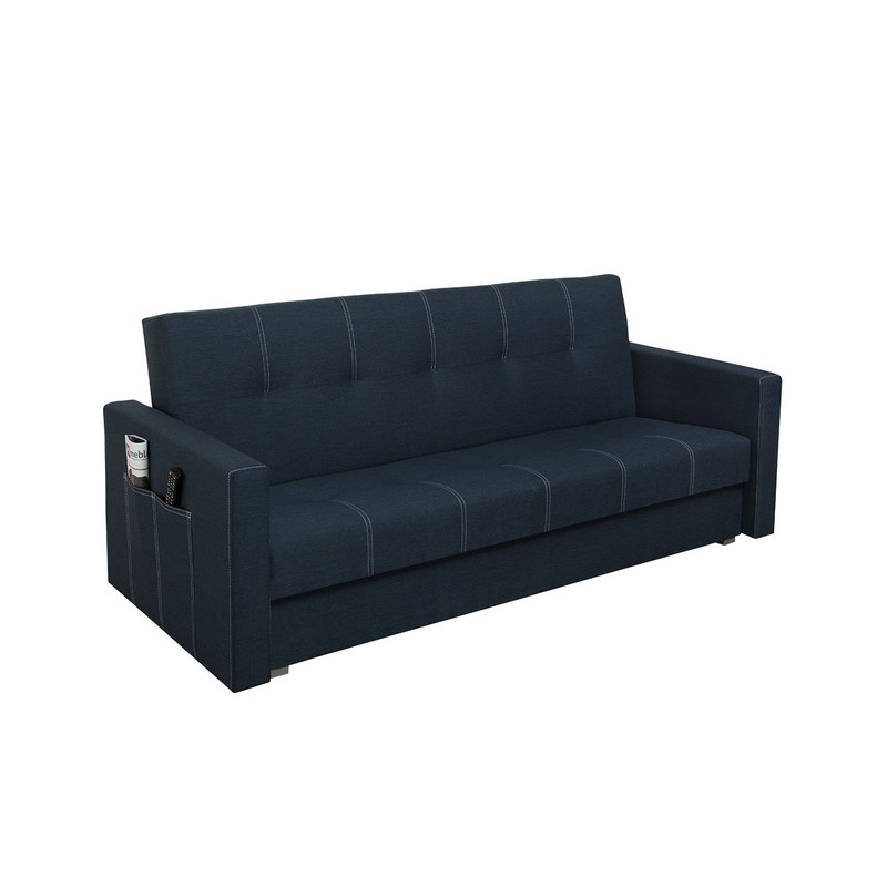 Rozkládací pohovka Adan má také praktická řešení, jako je kapsa na noviny v loketní opěrce, nebo kontejner na ložní prádlo.