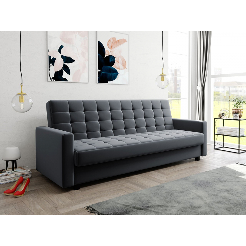 Pohovka je také vybavena funkcí spánku. Po rozložení dosahuje plocha na spánek 190 x 123 cm. K dispozici je také úložný prostor, ve kterém můžete uložit náhradní povlečení.