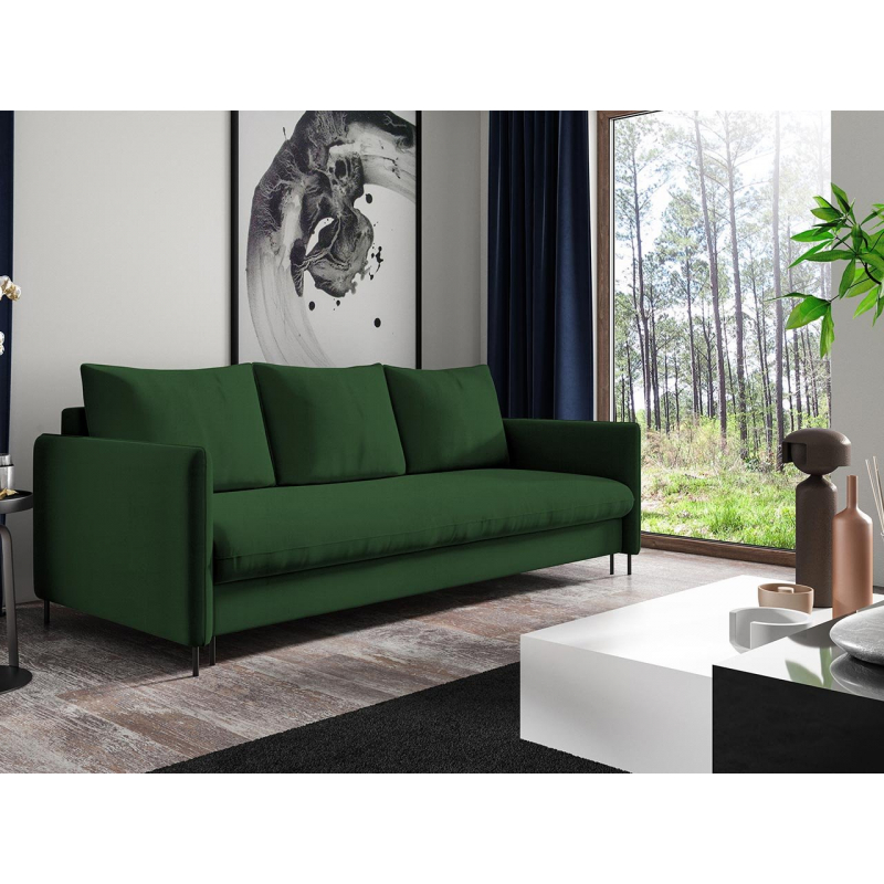 Rozkládací pohovka Ian je dostupná v různých barevných provedeních a nadčasových barvách. Materiál čalounění je měkký, příjemný na dotek a především odolný. Uvnitř má dva druhy pěny spolu s pružinami, díky čemuž je pohovka velmi pohodlná. Pohovka se rozkládá jednoduchým a rychlým způsobem, díky čemuž lze snadno přeměnit na místo na spaní. Za zmínku stojí, že je samostojící, takže ji můžeme umístit kdekoli v místnosti, ne nutně u zdi. Pohovka má úložný prostor na ložní prádlo s na další přikrývky nebo polštáře.