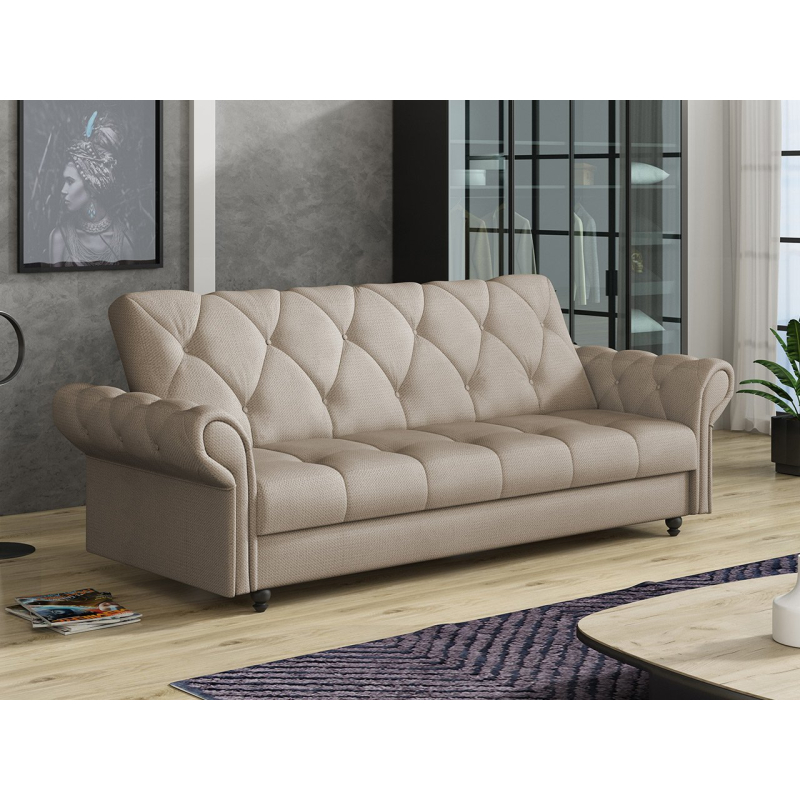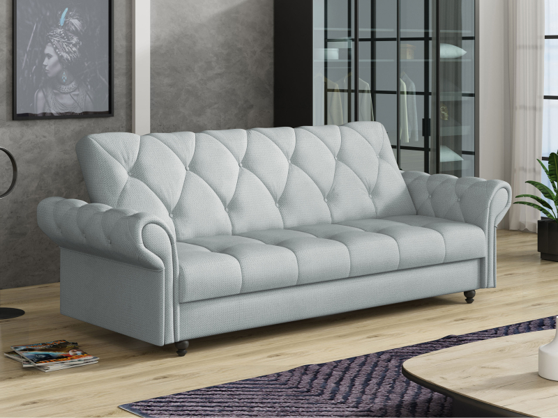 Pohovka Niztapi je nenahraditelným prvkem vašeho interiéru. Skládací konstrukce umožňuje rychlé přizpůsobení nábytku vašim individuálním potřebám. Integrovaný kontejner na lůžkoviny umožňuje udržovat v obývacím pokoji pořádek a zároveň poskytuje snadný přístup k potřebnému příslušenství. Nyní budou přikrývka nebo další polštáře vždy po ruce, aniž by musely zabírat další místo ve skříni. Rozkládací pohovka se perfektně hodí do různých stylů interiérového designu. Jemné prošívání mu dodává jedinečný charakter a stává se skvělou dekorací obývacího pokoje.