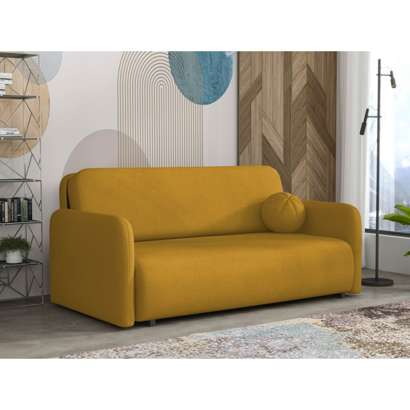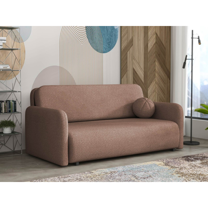 Americká pohovka má funkci spánku. Rychle a jednoduše z ní uděláte prostornou postel. Perfektní volba pro každodenní spaní nebo jako přenocování pro hosty. Model je čalouněný na dotek příjemnou látkou, která zajišťuje pohodlí a vysoký komfort používání. Úzké bočnice a dekorační polštář zdůrazňují moderní charakter pohovky.