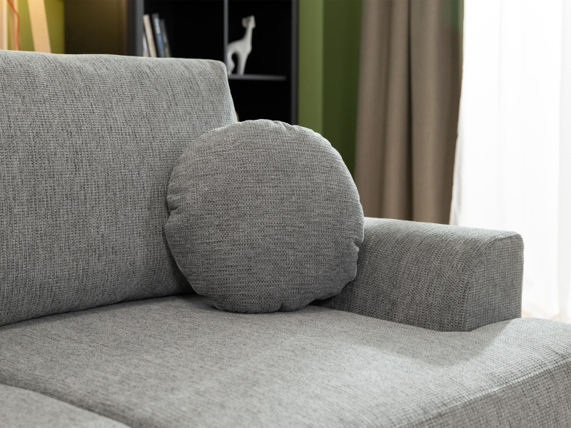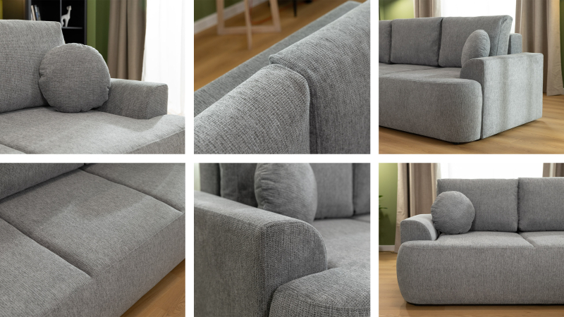 Tento model má přihrádku na ložní prádlo, která poskytuje dodatečný úložný prostor, ideální na přikrývky, polštáře nebo přikrývky. Další výhodou této rozkládací pohovky je její pohodlné opěradlo. Dodává se se třemi nastavitelnými polštáři, které se přizpůsobí tvaru vašich zad. Součástí balení jsou také dekorativní polštáře.