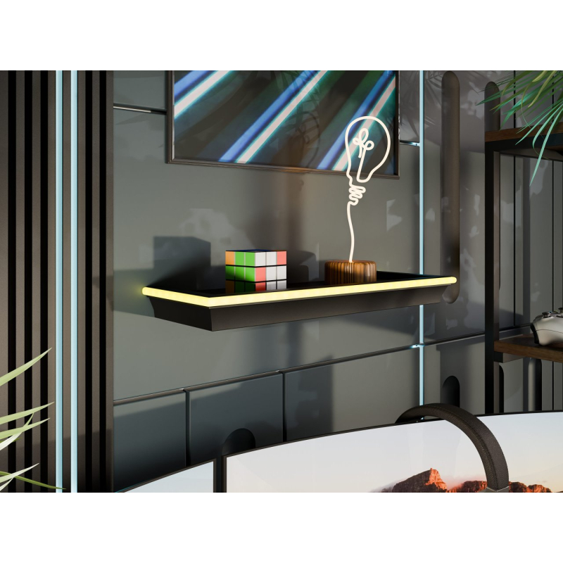 Výhodou tohoto inovativního doplňku dekoru je vestavěné LED osvětlení. Jemně prosvětlí místnost a samotné polici dodá moderní vzhled.
