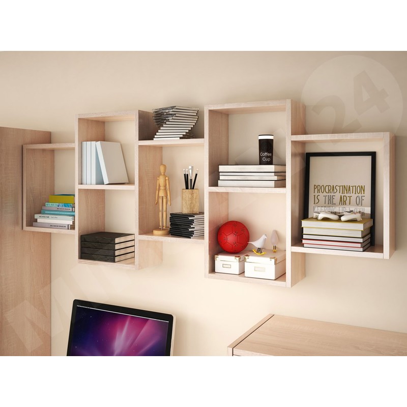 Model Cygni 001 nabyl geometrický, nerovný tvar, široký 161 cm. Police je vyrobena z laminované desky tloušťky 18 mm, která zajišťuje její odolnost.