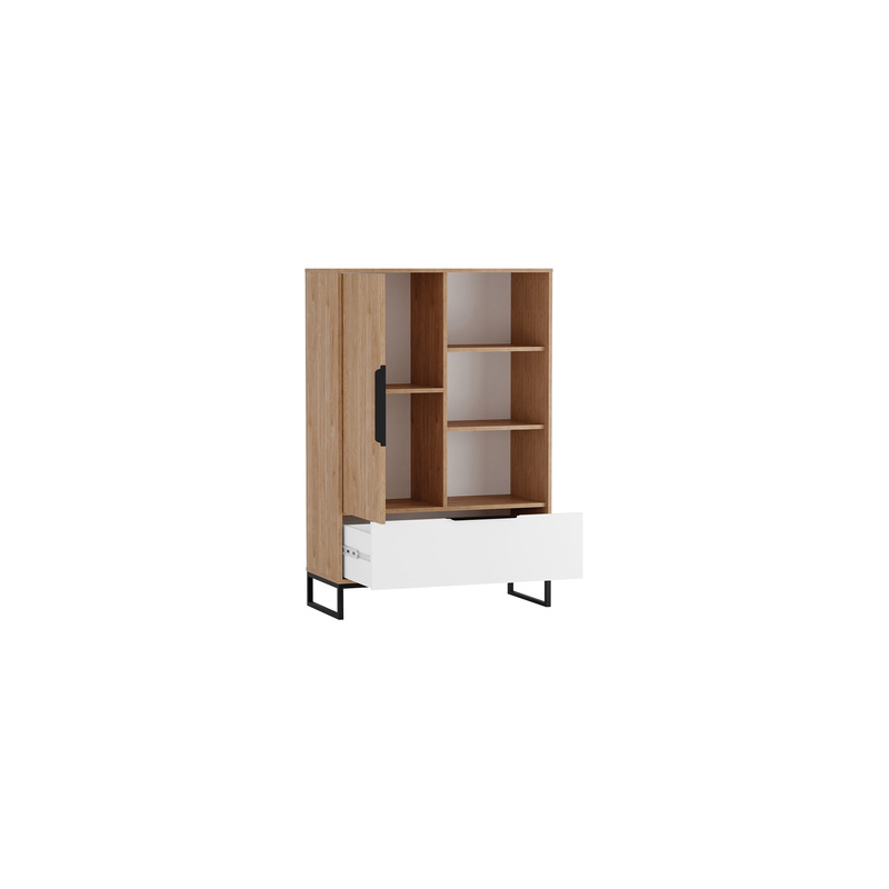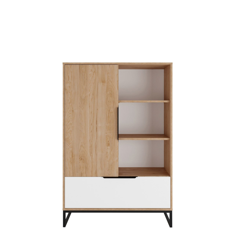 Regál Irrawaddy R1D1SZ IA08 je mimořádně praktický. Model namontovaný na kovovém rámu má otevřené i uzavřené prostory. Je ideální pro ukládání knih a pořadačů s dokumenty a pro vystavení sentimentálních suvenýrů. Kromě praktických poliček má i šikovnou zásuvku. Police je vybavena kovovými úchyty, které umožňují snadné otevírání. Prezentovaný model bude dobře fungovat v mnoha prostorech, od kanceláří až po pokoje dětí a teenagerů.