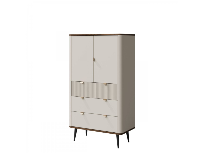 Dobrý dizajn je charakteristickým znakem moderně navrženého regálu do obývacího pokoje Rotevio 2D3S RT6. Kombinaci módních barev a drážkovaných vložek doplňují jemné úchyty. V této verzi působí regál elegantně a módně. Zajímavý charakter tohoto praktického kusu podtrhují zaoblené hrany, které dodávají polici měkký pocit a lehčí vzhled.