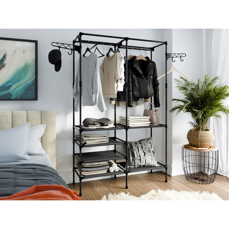 Věšák na oblečení je také vybaven speciálními háčky na klobouky nebo jiné oděvy. Nábytek je ideálním řešením pro uspořádání šatníku nebo předsíně.