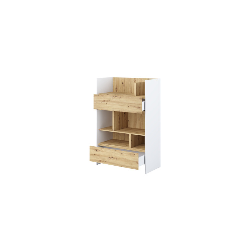 Regál BC-26 je praktickým a estetickým doplňkem k rozkládací pohovce Bed-Concept, který pomáhá maximalizovat využití prostoru. Otevřené police vám poskytnou prostor pro vaše oblíbené knihy, dekorace a předměty každodenní potřeby, které chcete mít po ruce. Dvě prostorné zásuvky poskytují diskrétní úložný prostor, který pomáhá udržovat pořádek ve vaší ložnici nebo obývacím pokoji. Díky jednoduchému a modernímu tvaru se regál perfektně hodí k ostatnímu nábytku z kolekce Bed-Concept a vytváří tak ucelenou a elegantní strukturu.