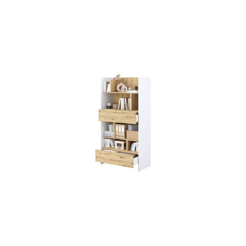 Moderní a funkční regál Bed-Concept BC-28 zvýší funkčnost interiéru. Perfektní doplněk, který zaujme svojí praktičností a stylem. Díky minimalistickému designu se hodí do každého aranžmá a dodává mu stylový vzhled. Různé velikosti přihrádek umožňují pohodlné ukládání knih, dekorací a jiných předmětů. Regál disponuje také zásuvkami, čímž vzniká praktický prostor pro drobnosti, elektroniku či dokumenty.