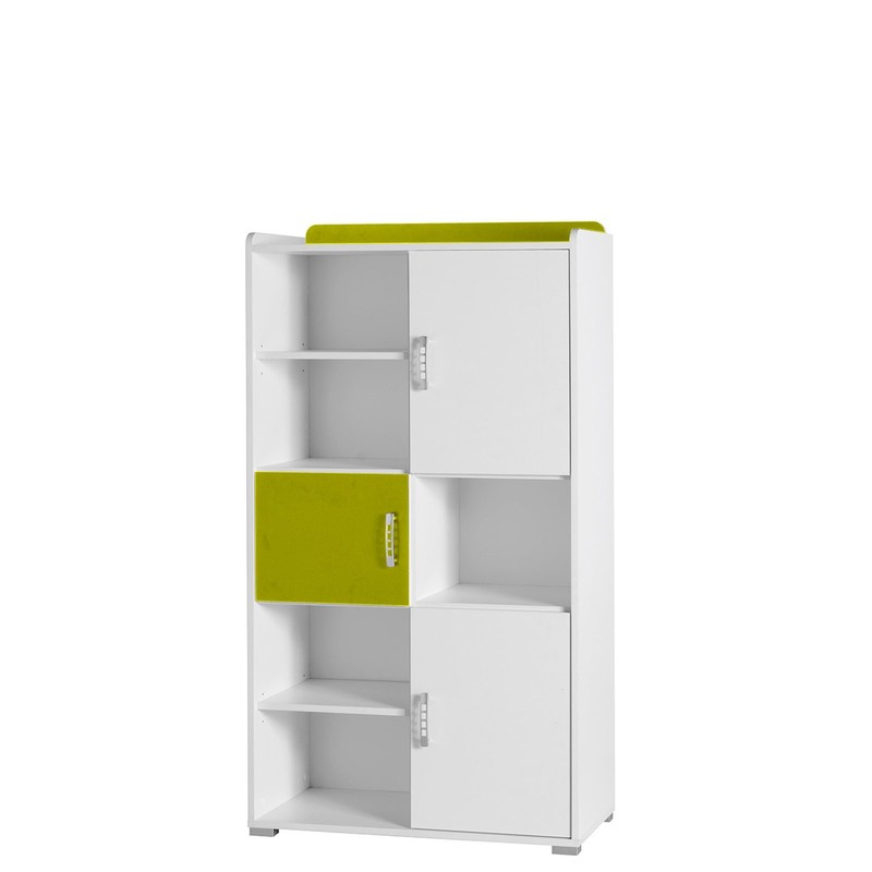 S regálom Lotto LT4 zajistíte jedinečný pokoj pro děti a mládež. Barevné dekorace na čelních plochách přinášejí do interiéru nádech čerstvosti a zvyšují atraktivitu uspořádání. Chytře navržený regál má stejný počet uzavřených a otevřených polic. Tento regál pro mládež bude užiteční pro ukládání knih, učebních pomůcek a trofejí. Široká barva nábytku usnadňuje uspořádání přátelského interiéru pro chlapce i pro dívku.