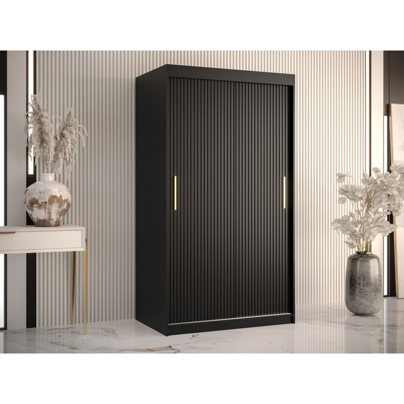 Frézovaná čela jsou výrazným detailem šatní skříně. Již z dálky viditelné drážky mu dodávají kouzlo a jsou také charakteristickým prvkem aranžmá. Takto vkusně zařízená šatní skříň dokonale ladí s dekorem obývacího pokoje, ložnice i chodby.