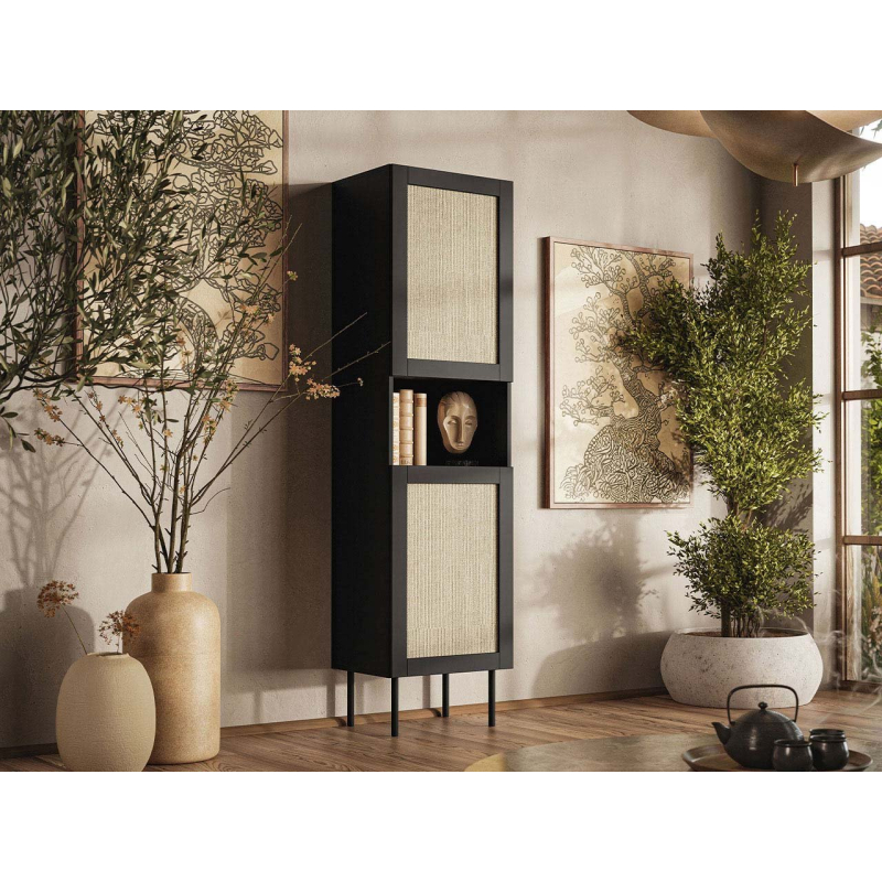 Skříň Wilent 2D do obývacího pokoje je vynikající volbou pro ukládání a vystavování dekorací. Její podmanivý vzhled nadchne každého. Dekorativní čela, která jsou kombinací různých materiálů, podtrhnou charakter každého interiéru. Tento model bude ideální pro atmosférické aranžmá, které vnese do interiéru nádech přírodní svěžesti. Vnitřek skříně tvoří prostorné police vybavené překrývajícími se závěsy se systémem tichého dovírání. Nemá žádné úchytky. Otevřete ji uchopením za hranu čela, která mírně vyčnívá nad desku stolu. Skříň má také vysoké nožičky, které se osvědčí při úklidu podlahy.