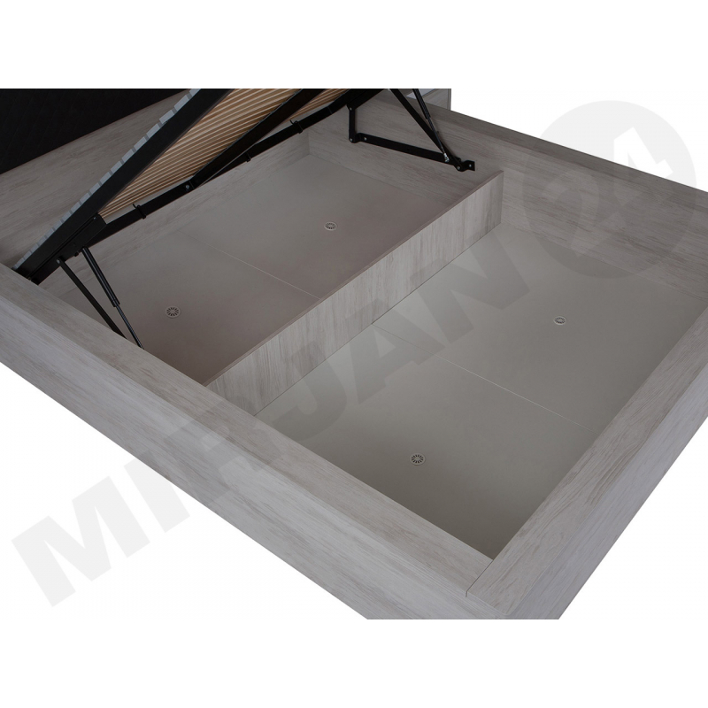Ložnicová postel je vybavena kontejnerem na lůžkoviny a rámem matrace.