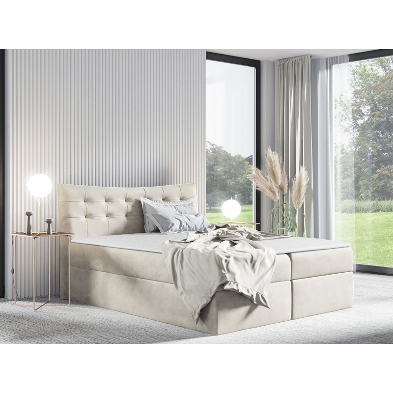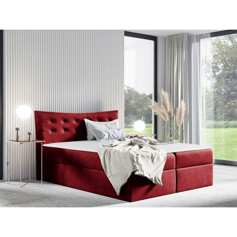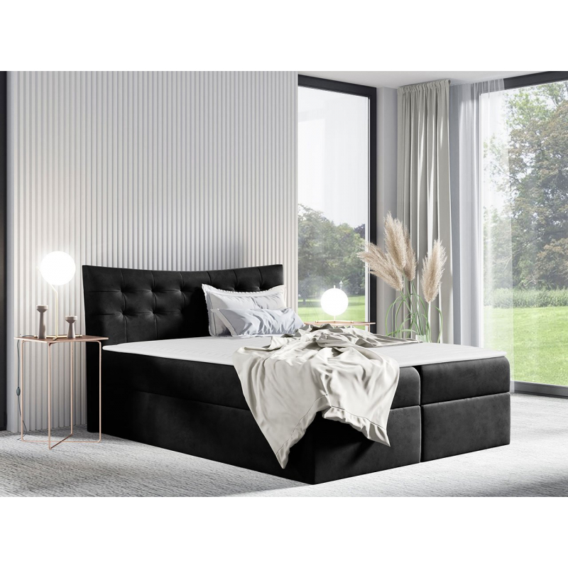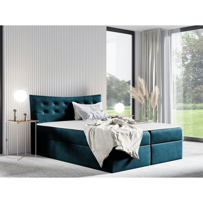Výrazným detailem postele je prošívané čelo. Čelo zdobí hluboko vsazené knoflíky a jeho měkkost poskytuje pohodlnou oporu zad při odpočinku s knihou nebo filmem těsně před spaním.