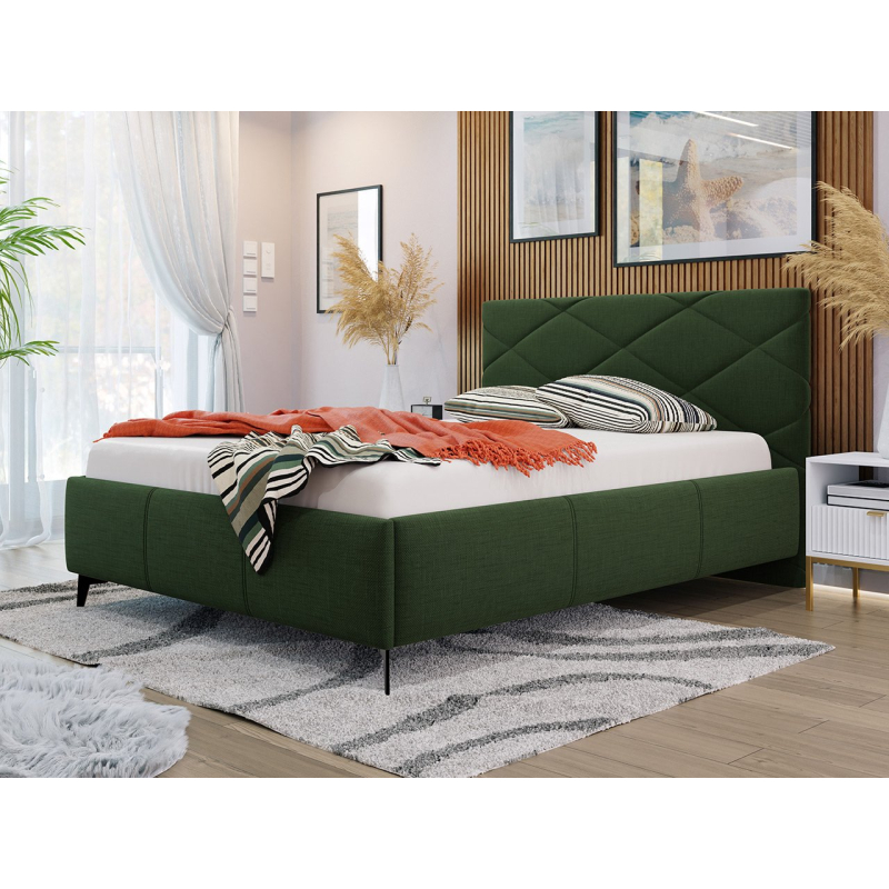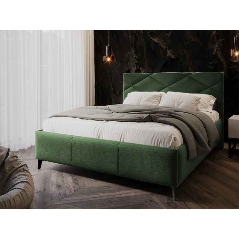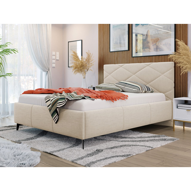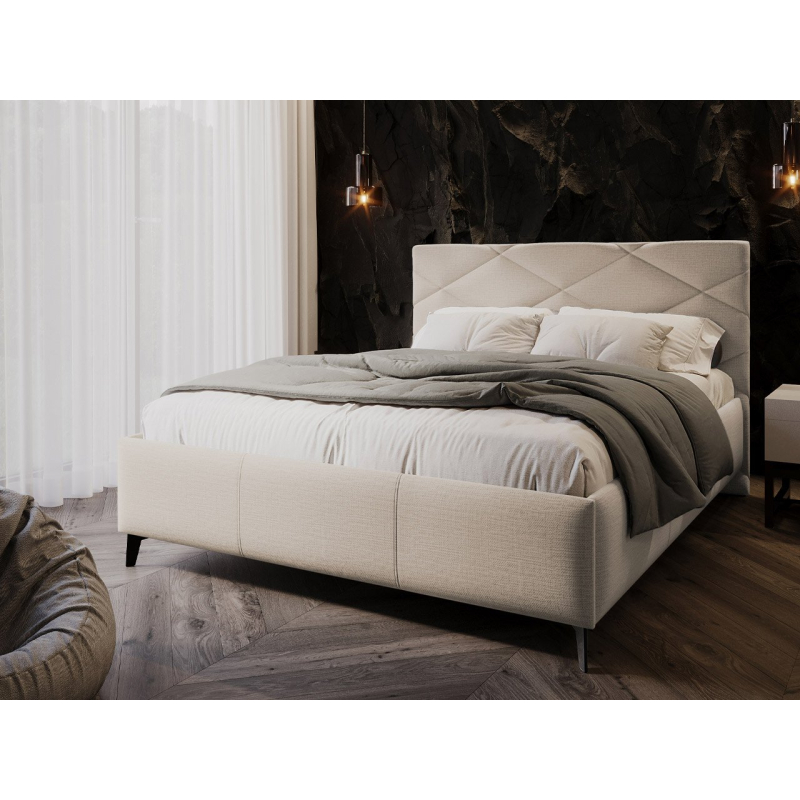 Měkce čalouněná manželská postel Lanoi poskytuje komfortní podmínky pro přenocování. Nábytek je čalouněný látkou, vyzařuje útulnost a teplo, které vás jemně uspává a zpříjemňuje usínání každý den. Pozitivní dojmy umocňuje i charakteristické prošívání opěrky hlavy. Módní diamant ve velkém formátu zdůrazňuje avantgardní charakter celé konstrukce.