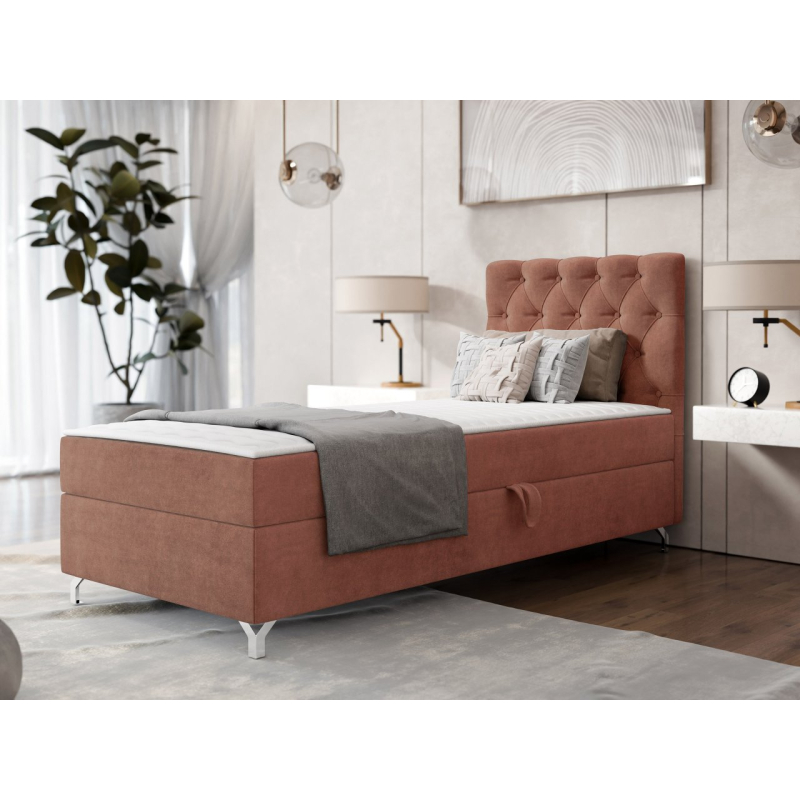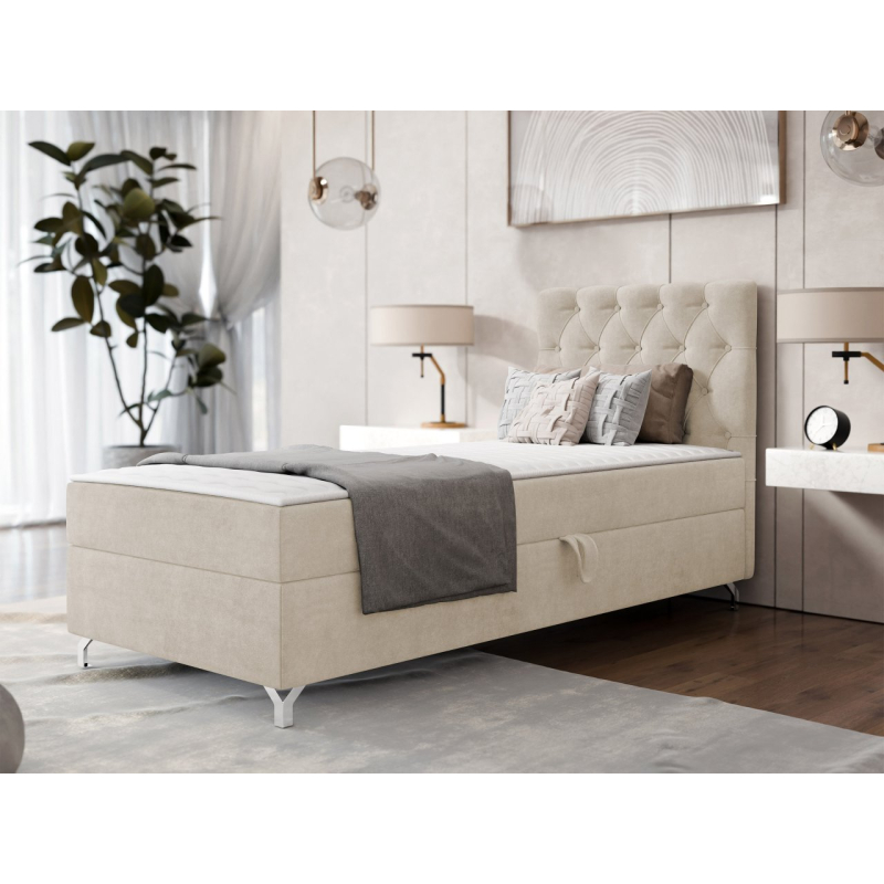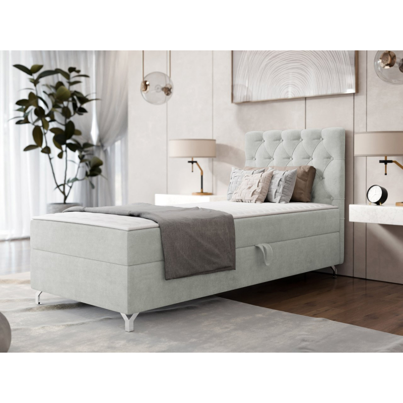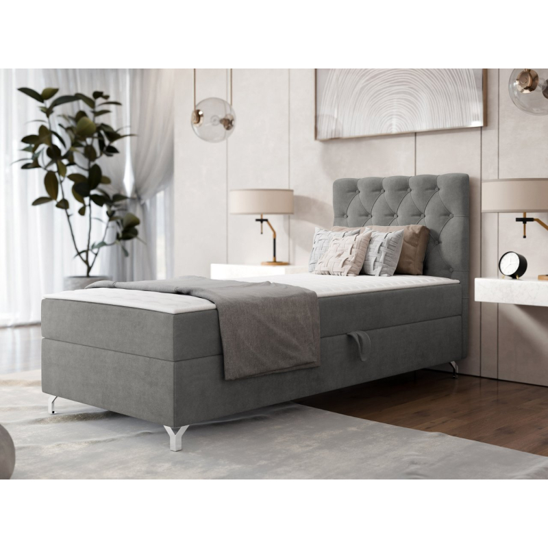 Spánek je velmi důležitou součástí našeho života, proto se vyplatí postarat se o pohodlí nočního odpočinku. Kontinentální postel Jolaks 1 vám to umožní. Jedná se o model pro jednu osobu, jehož vrstvená konstrukce poskytuje ideální relaxaci a správnou oporu pro celé tělo. Pohodlí zajišťují dvě matrace: hlavní matrace a topper. Kontinentální postel má také kontejner na lůžkoviny, který je ideálním základem pro polštáře a sezónní přikrývky. Celek doplňuje prošívaný podhlavník, který je dekorativní tečkou za celou variantou.