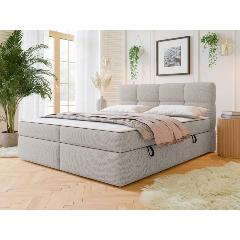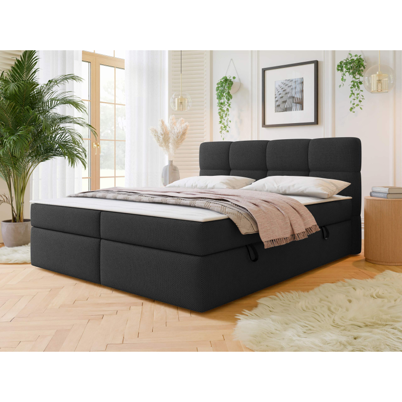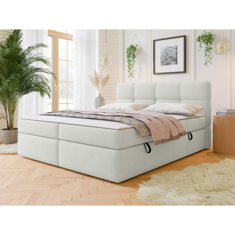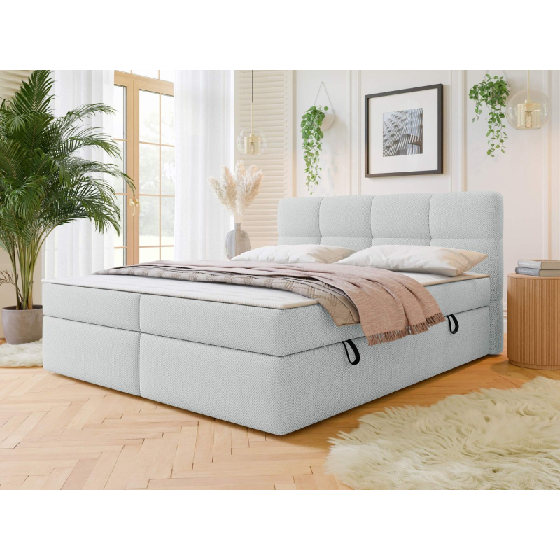 Ložnice je oázou každodenního odpočinku. Dbejte na její správné vybavení. Kontinentální postel Mojato vám v tom pomůže. Tento prostorný model, dostupný v několika variantách, zajistí pohodlný odpočinek pro dva. Hlavní a horní matrace zajistí noční pohodlí. Představená varianta je navíc funkční. Opěrka hlavy postele plní nejen dekorativní roli, ale poslouží i při čtení knihy před spaním. Poskytuje mimořádně praktickou oporu při ponoření se do oblíbené četby. O pořádek se stará kontejner na lůžkoviny. Tento chytrý úložný podstavec vám umožní umístit do něj peřiny a polštáře.