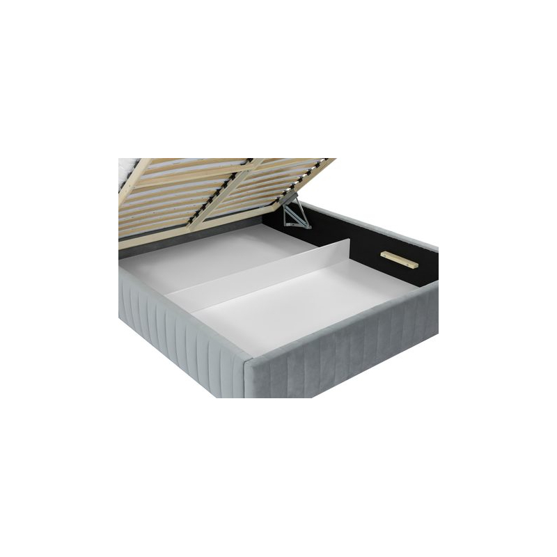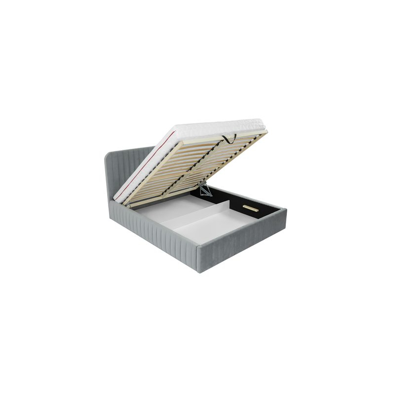 Postel je vybavena velkým úložnym prostorem, do kterého snadno umístíte sezónní peřiny, polštáře nebo přikrývky. Úložná základna je vybavena pružinami, které usnadňují otevírání. Varianta má také dřevěný rám a je samostatně stojící.