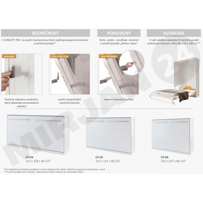 - CP-04: šířka: 215 cm, výška: 158 cm, délka: 46-177 cm