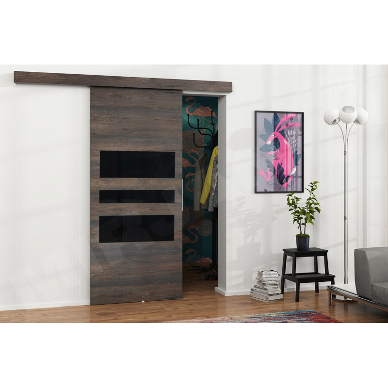Vnitřní posuvné dveře Mereno I 100 jsou dokonalou alternativou k tradičním textilním dveřím nebo závěsům. Dveře jsou vyrobeny z kvalitní laminované desky v módním a nadčasovém barevném provedení. Jejich velkou výhodou je univerzálnost a možnost montáže na pravou nebo levou stranu. Přední stranu dvířek navíc zdobí tři vložky v kontrastní barvě.