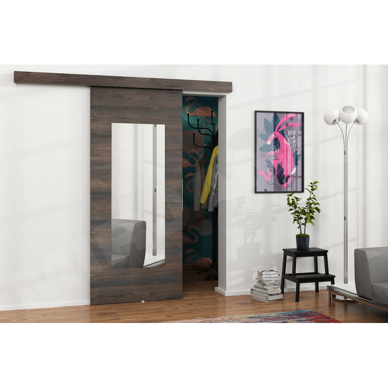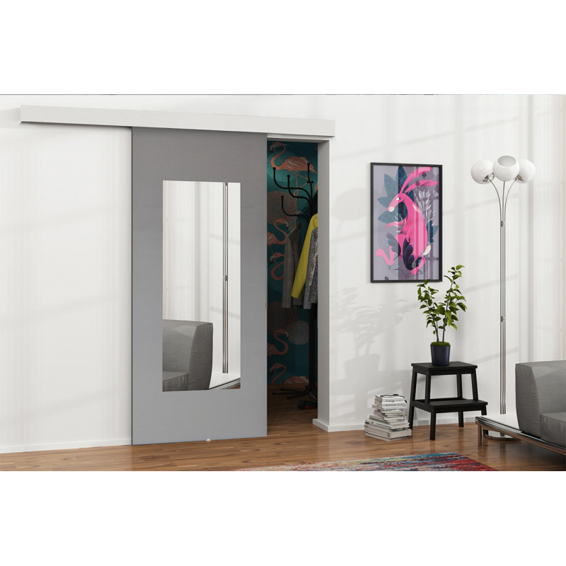 Vnitřní posuvné dveře Mereno VII 80 umožňují snadné propojení nebo oddělení místností v závislosti na vznikajících potřebách. S jejich pomocí můžete také oddělit prostor v ložnici a uspořádat tam svůj vysněný šatník s četnými policemi a tyčemi na šaty. Posuvné dveře jsou dostupné v módních barvách a jejich přední stranu zdobí zrcadlo. Pohodlí při každodenním používání zajišťuje hliníkový úchyt přiměřené délky zajišťující volný pohyb. Nástěnné dveře jsou vyrobeny z laminované desky odolné vůči poškrábání a poškození, díky čemuž se budete moci dlouho těšit z jejich bezvadného vzhledu.