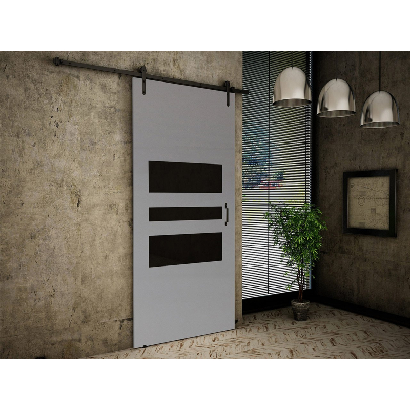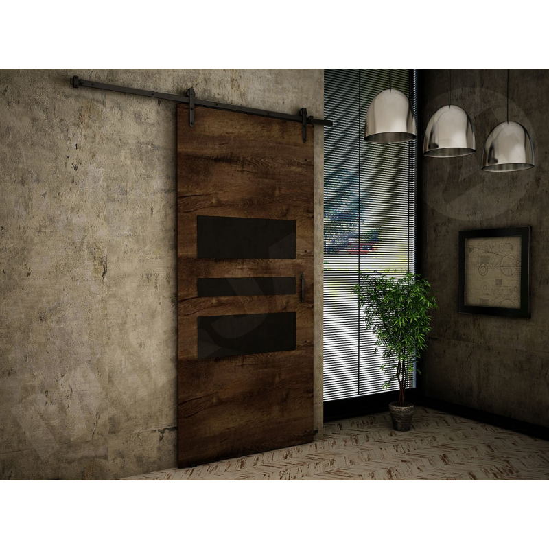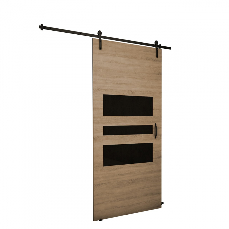 Posuvné dveře Roko I 100 jsou široké dveře, které dokonale oddělí prostor šatníku od ložnice nebo jídelny od obývacího pokoje. Posuvné dveře Roko I navíc nabízí zajímavý a originální styl, který dokáže oslovit lidi, kteří mají rádi rustikální, loftový nebo industriální interiér. Tento styl dveří je ovlivněn takovými prvky, jako jsou: stylizované kliky a vedení, vyrobené z matného černého kovu, barva čel a ozdobné vložky umístěné ve střední části dveří – zadní strana dveří je hladká. neobsahují žádné vložky.