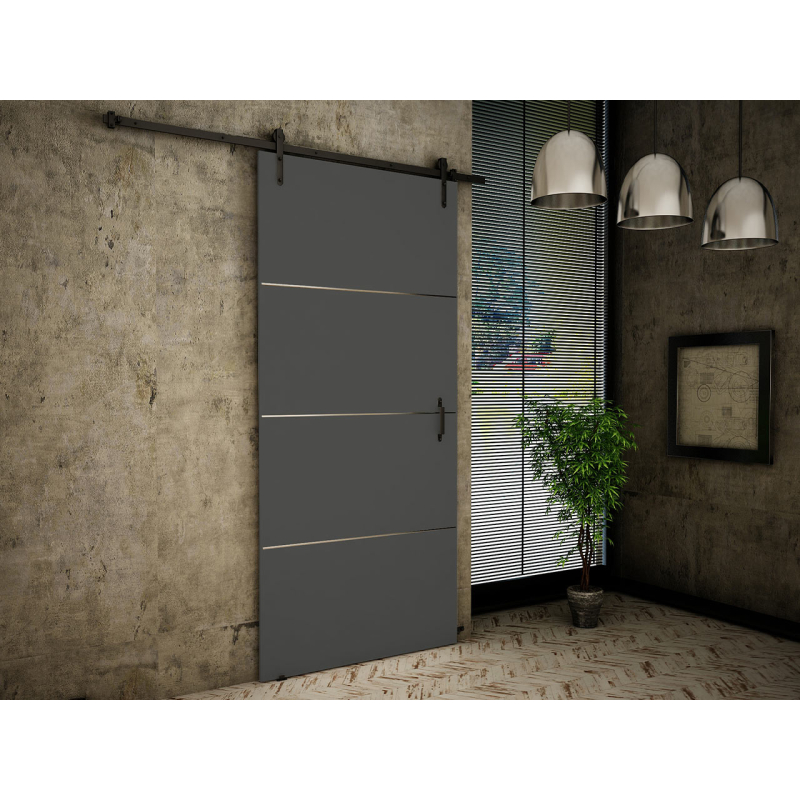 Posuvné dveře Roko Plus 80 jsou modelem zajímavého vzhledu, který se skvěle hodí do interiérů odkazujících na industriální nebo rustikální loftový styl. Posuvné dveře Roko Plus jsou dostupné v široké škále barev a mají stylizované kovové vedení v černé matné barvě. Stříbrné vložky jsou dodatečným dekorativním akcentem.
