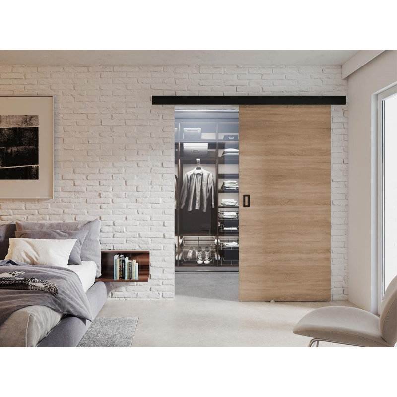 Nabídka Mirjan24 zahrnuje posuvné dveře Juwentyn, které se pohybují po horním vedení, namontované nad dveřním otvorem. Prezentované posuvné dveře působí lehce a tiše a můžete je otevřít pomocí stylové kliky.