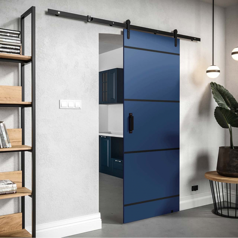 Interiérové posuvné dveře Ulfiko 90 IV jsou dostupné v módních barevných variantách a dobře se budou hodit jak do moderních interiérů, tak do loftových interiérů. Dveře se posouvají na kovových lištách černé barvy. Stylové rukojeti jsou také vyrobeny z černého kovu. Doplňkovou estetickou hodnotou posuvných dveří Ufiko jsou ozdobné pruhy, také v černé barvě, které můžete na dveře nalepit při montáži. Souprava obsahuje samozavírací systém, který zabraňuje nárazům při zavírání.