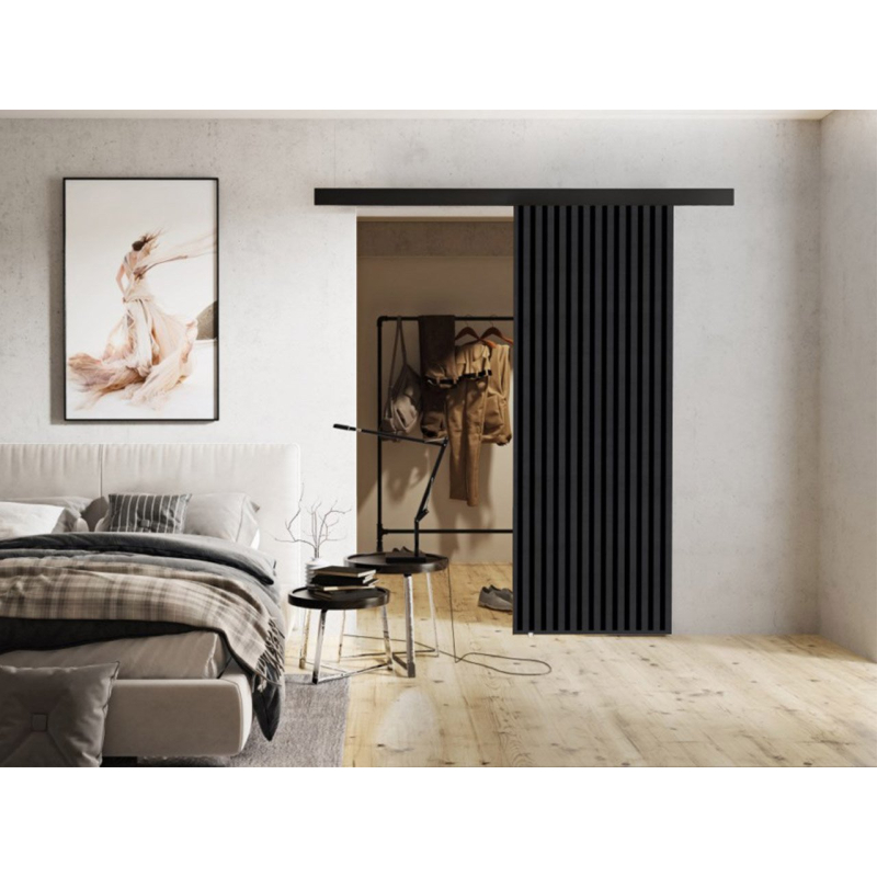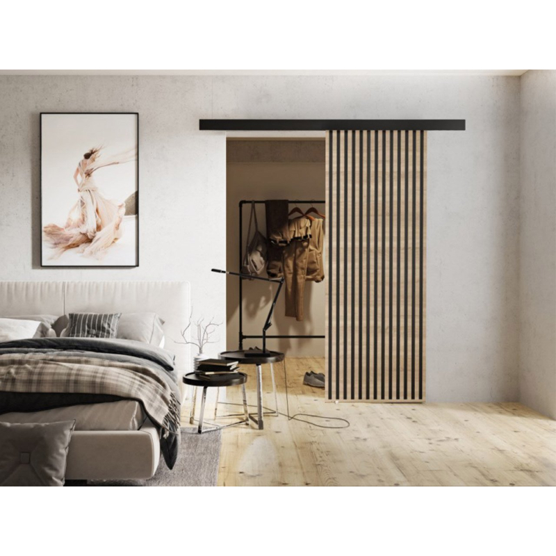 - křídlo dveří se posouvá po vedení namontovaném nad dveřním otvorem pod krytem,