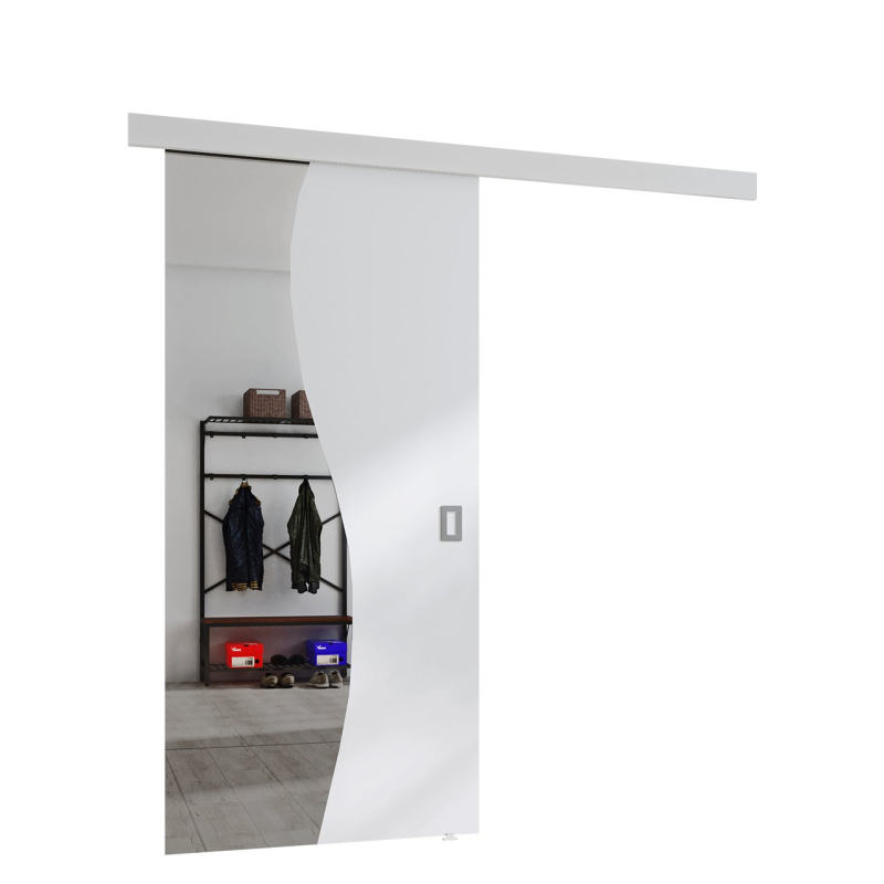 - křídlo dveří se posouvá po vodítku namontovaném nad dveřním otvorem pod krytem,