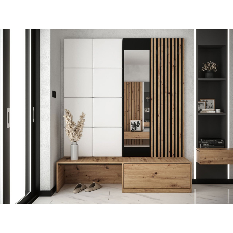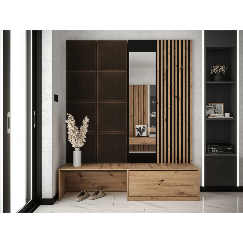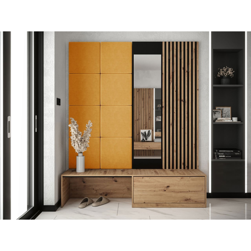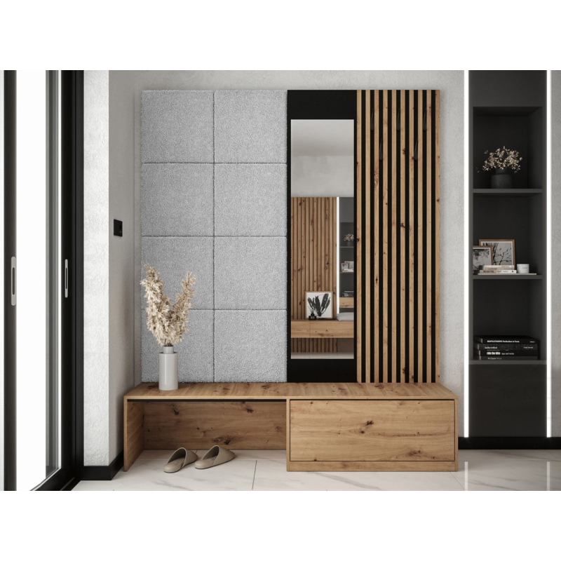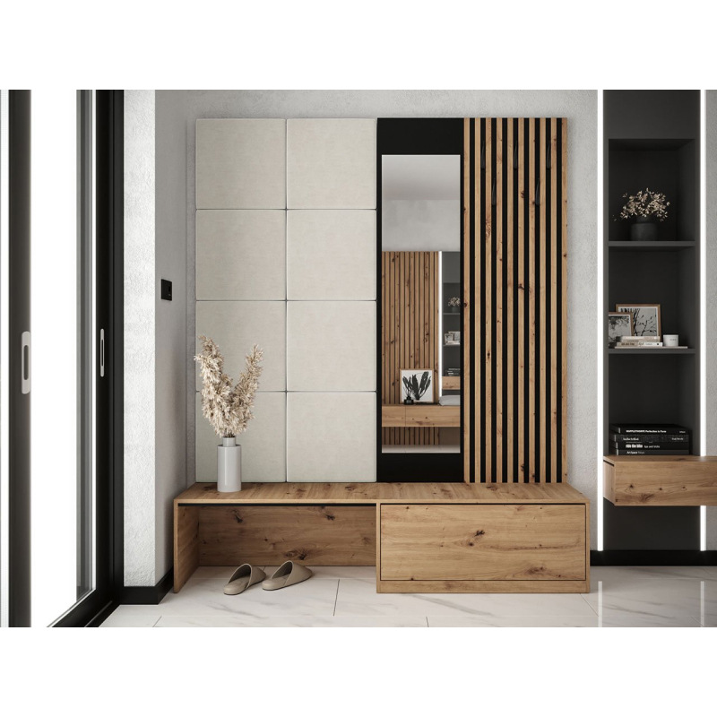 O stylový design předsíně se postará moderní šatní skříň s čalouněnými panely Anrilot I. Kombinace nejmodernějších doplňků současnosti mu dodává jedinečný charakter. U měkkých panelů můžete vybírat z různých módních barev - světlé, tmavé, energické barvy jsou něco, co dodá charakter celé místnosti.