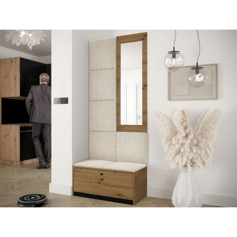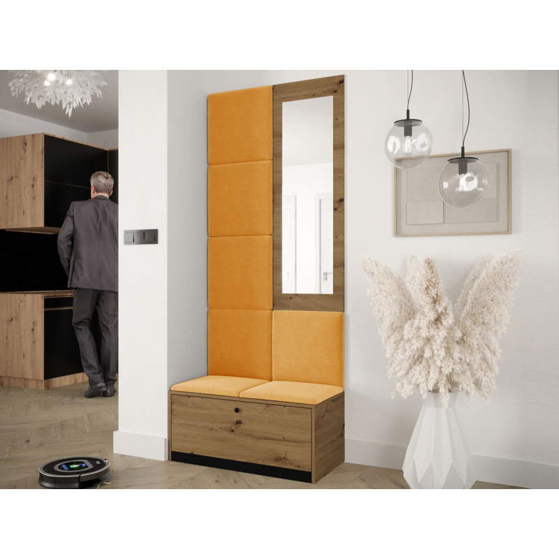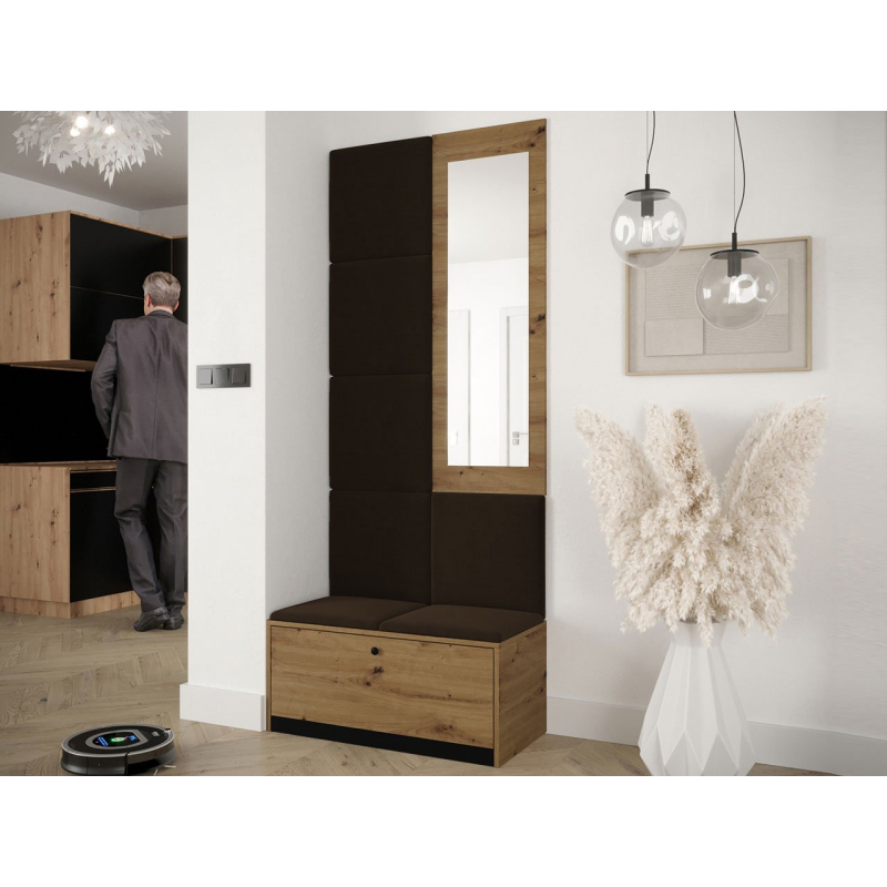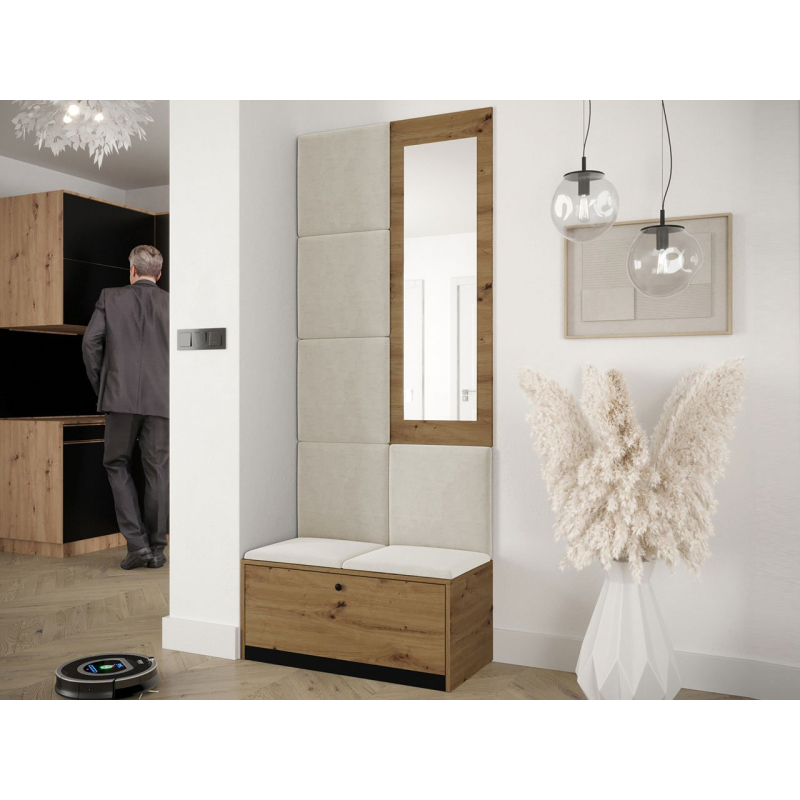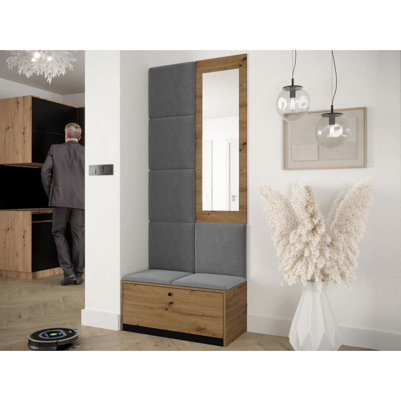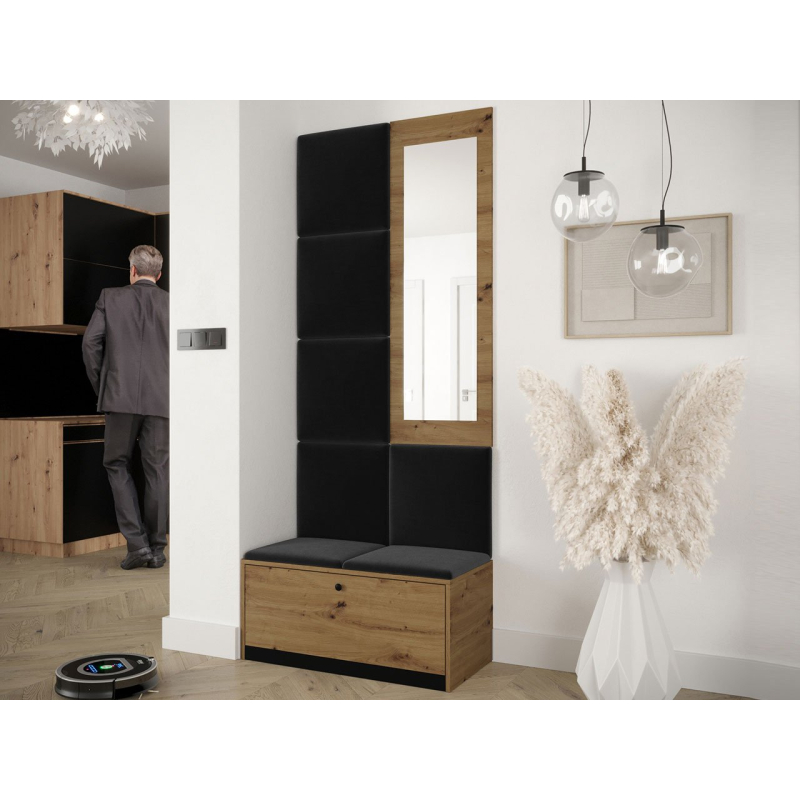 Čalouněné panely, které jsou součástí soupravy, jsou dekorativním prvkem stěn. Kromě vizuální přitažlivosti přinášejí do místnosti také útulnost a měkkost. Z praktického hlediska chrání stěny, které jsou vystaveny znečištění.