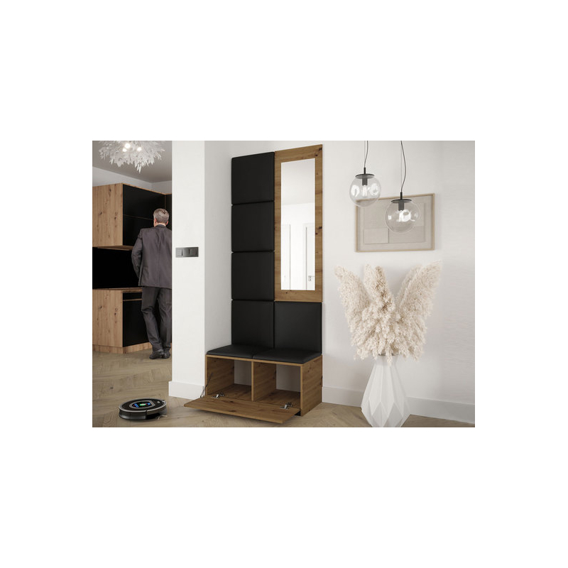 Moderní vchod do domu nám zpříjemňuje odchody a návraty. Umožňuje to funkční předsíň Esmoltis II. Kombinace skříně na boty, zrcadla a šatní skříně poskytuje dobře organizovaný úložný prostor pro věci potřebné v předsíni. Své místo zde najdou bundy, kabáty a boty. Díky zásuvce zabudované v šatníku zde najde ideální místo i příslušenství.