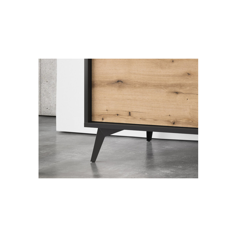 Díky našemu návrhu si zařídíte elegantní předsíň v loftovém stylu. Skříň je upevněna na kovových nožičkách. Má zrcadlo a ozdobná, frézovaná dvířka, za kterými je botník. Na něm je umístěn praktický, odnímatelný polštář. Funkční úložný prostor nabízí také šatní skříň a věšáky. Model je vybaven systémem otevírání "PUSH TO OPEN".