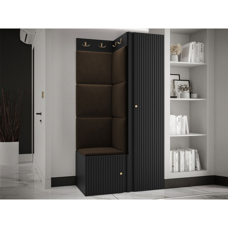 Moderní předsíň se sedadlem Towiro Slim XXV dobře poslouží jako praktický úložný prostor pro boty a svrchní oblečení. Pomocí vnitřku šatní skříně, která je součástí sestavy, můžete uložit také drobné sportovní potřeby nebo deštník. Dostatek prostoru je i pro příslušenství pro čtyřnohého miláčka – vodítko, postroj a něco teplého, každou z těchto věcí můžete položit na jednu z vnitřních polic.