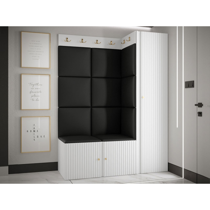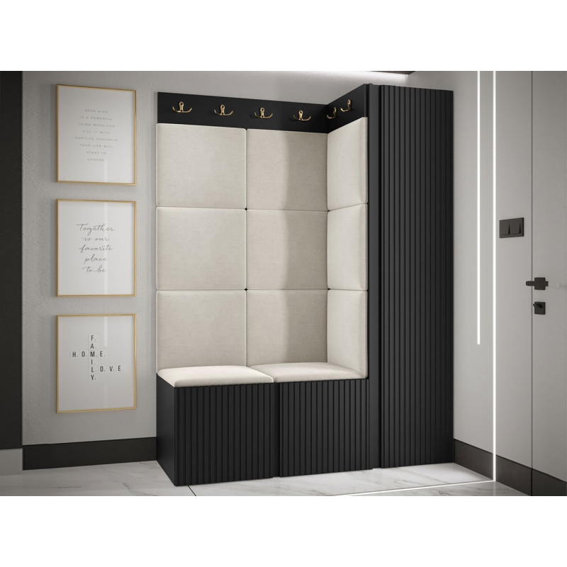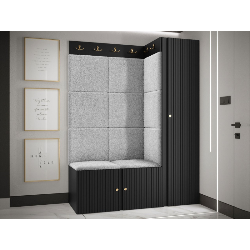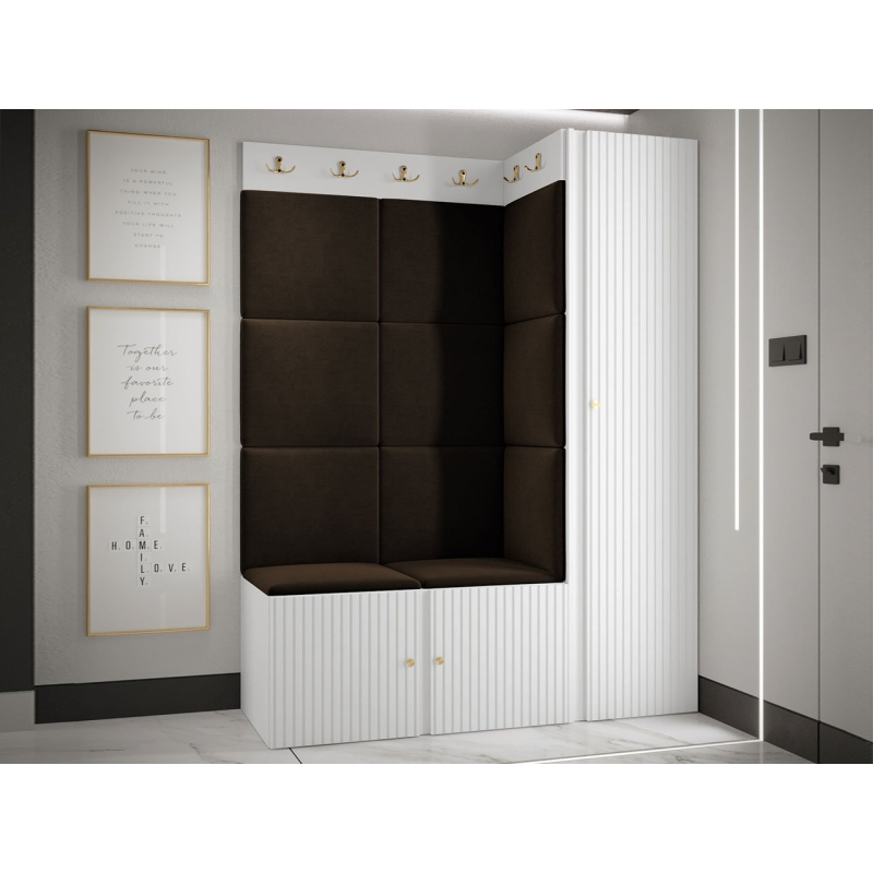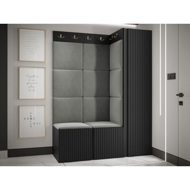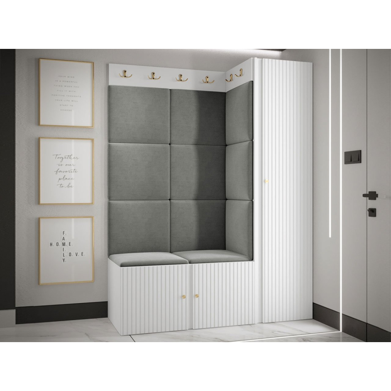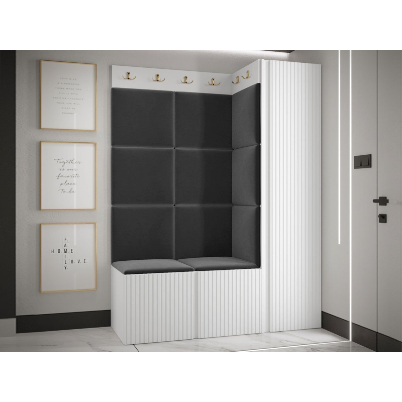Towiro Slim IX je ideální volbou pro moderní předsíň s posezením. Dokonale zapadne do glamour a loftových aranžmá. Součástí sady je pološatní skříň, botník, věšáky na oblečení a krásný čalouněný panel dostupný v mnoha barvách, který dodá interiéru jedinečnou atmosféru.